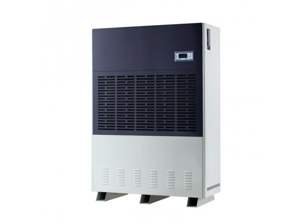 工业用除湿机通过风机将潮湿空气抽入机器内部,通过压缩机制冷将蒸发器降温至露点以下,潮湿空气经过蒸发器在表面凝结成水,汇集至接水盘后,流入水箱中,干爽空气经冷凝器重新加热由出风口排出,这样不断循环将室内湿度降低。